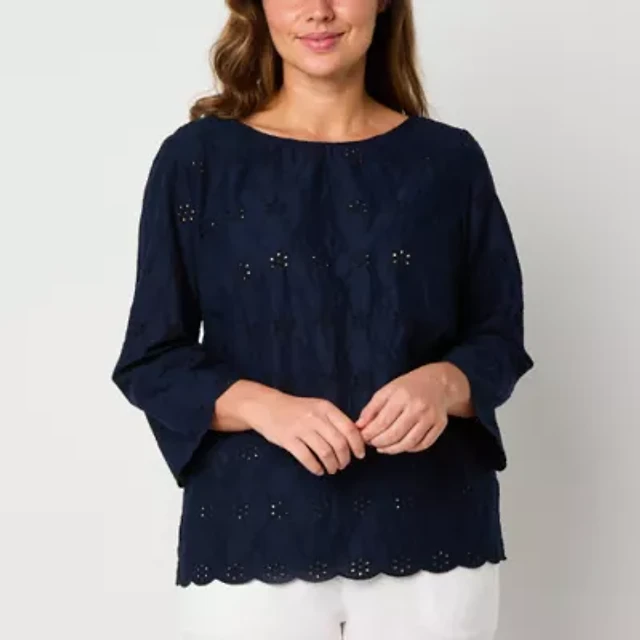 Liz Claiborne Womens Crew Neck 3/4 Sleeve Plus Blouse