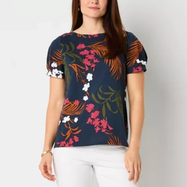 Liz Claiborne Womens Boat Neck Short Sleeve T-Shirt