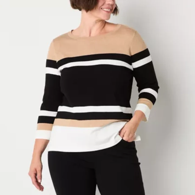 Liz Claiborne Womens Crew Neck 3/4 Sleeve Pullover Sweater