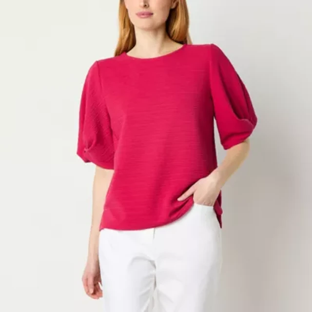 Liz Claiborne Womens Crew Neck Elbow Sleeve Blouse