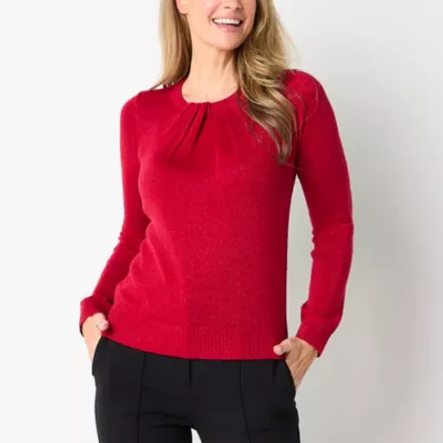 Liz Claiborne Tall Womens Crew Neck Long Sleeve Pullover Sweater
