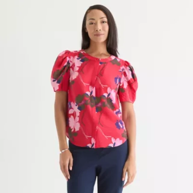 Liz Claiborne Womens Crew Neck Short Sleeve Blouse