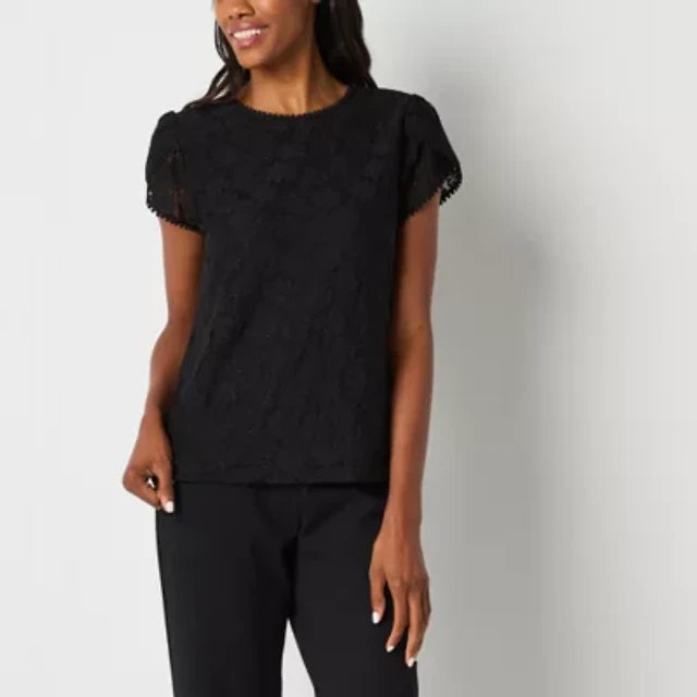 Liz Claiborne Womens Crew Neck Short Sleeve Lace Tall Blouse