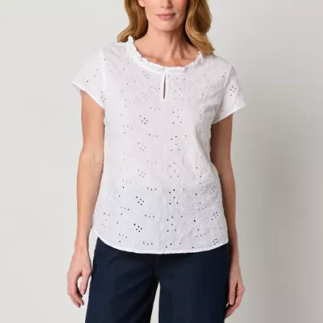 Liz Claiborne Womens Round Neck Short Sleeve Blouse