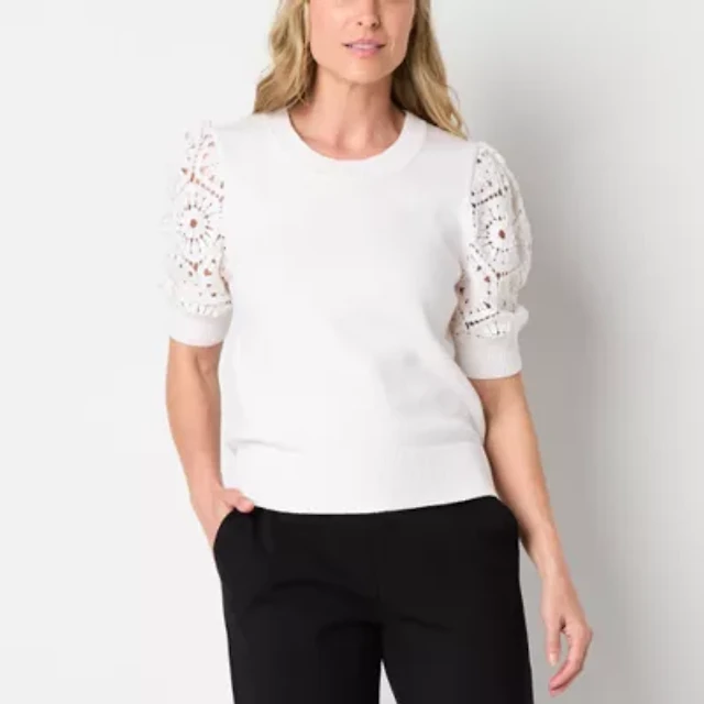 Liz Claiborne Womens Crew Neck Short Sleeve Pullover Sweater