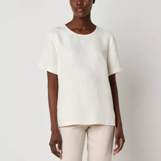 Liz Claiborne Womens Crew Neck Short Sleeve Blouse