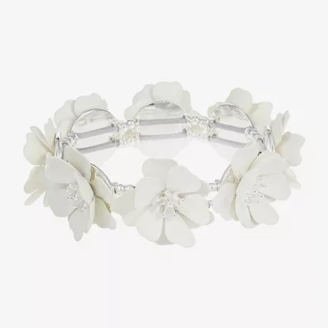 Liz Claiborne Womens Simulated Pearl Flower Stretch Bracelet