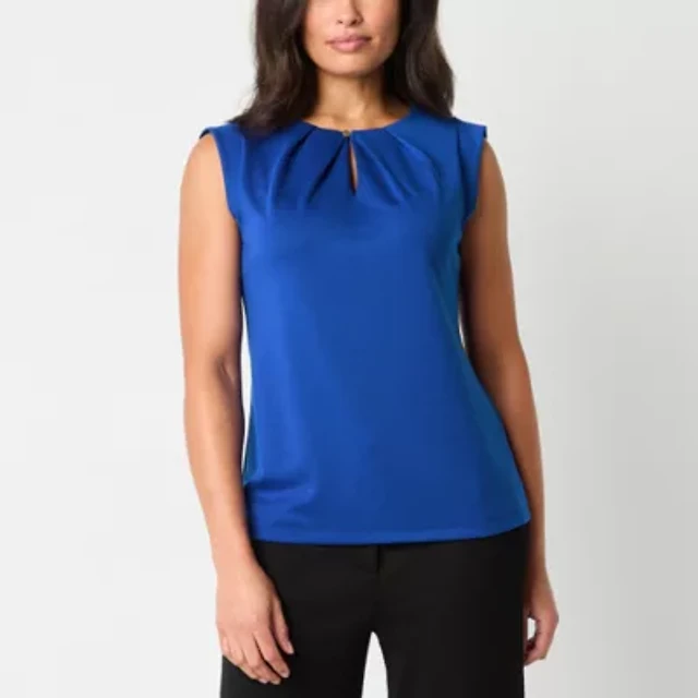 Liz Claiborne Womens Keyhole Neck Sleeveless Blouse