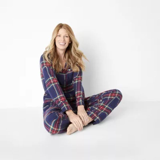 Liz Claiborne Womens Long Sleeve 2-pc. Flannel Pant Pajama Set