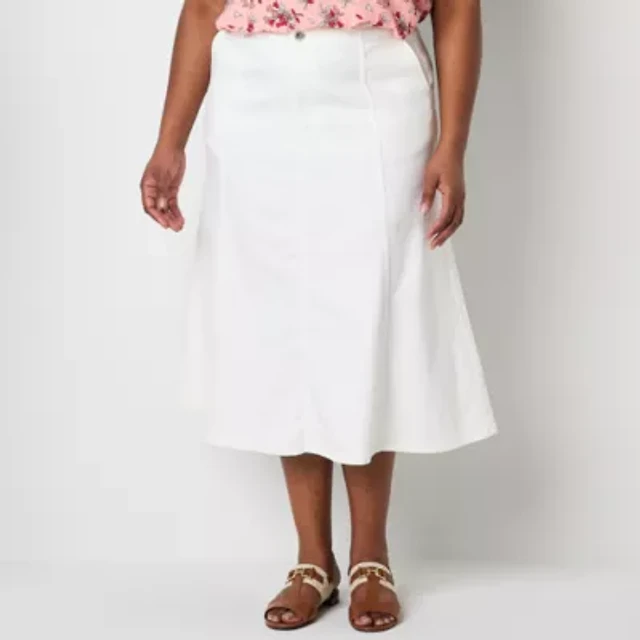 Liz Claiborne Womens Mid Rise Midi Plus A-Line Skirt