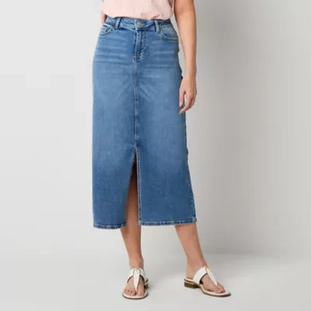 Liz Claiborne Womens Mid Rise Stretch Fabric Midi Denim Skirt