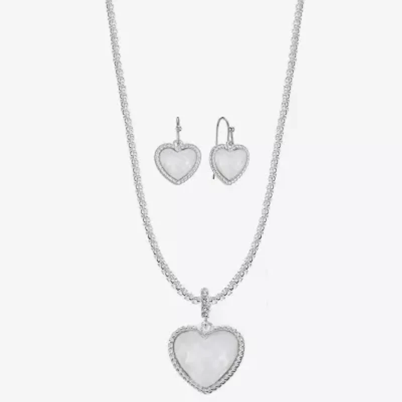 Liz Claiborne Womens Pink Mother Of Pearl Heart 2-pc. Jewelry Set