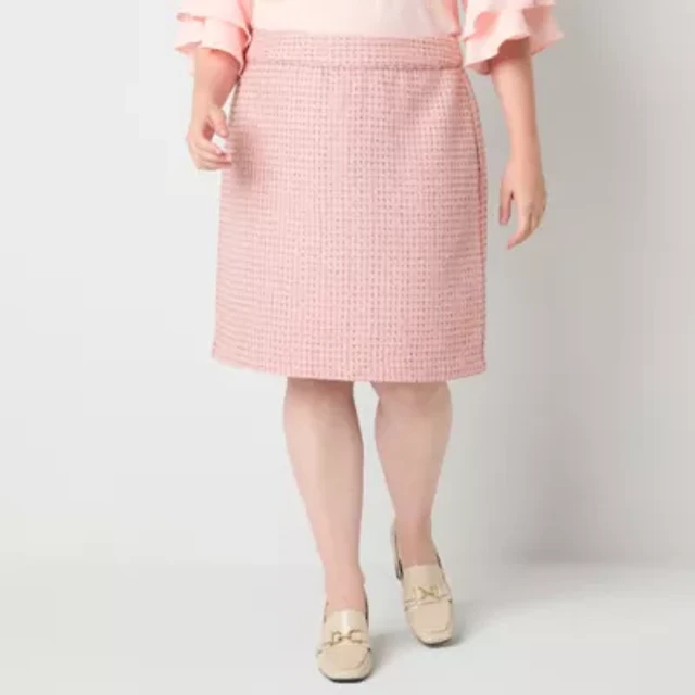 Le Suit Plus Size Houndstooth Pencil Skirt Suit Set