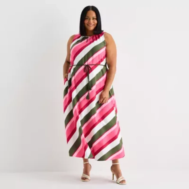 Liz Claiborne Womens Plus Short Sleeve Striped Maxi Dress