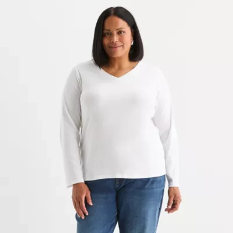 Liz Claiborne Womens Plus V Neck Long Sleeve T-Shirt