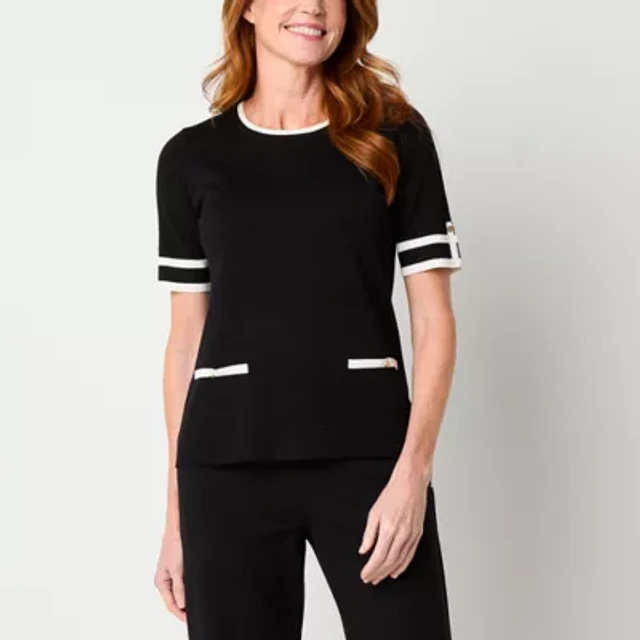 Liz Claiborne Womens Crew Neck Short Sleeve Pullover Sweater