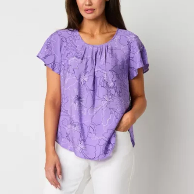 Liz Claiborne Womens Crew Neck Short Sleeve Blouse