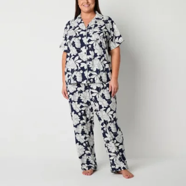 Liz Claiborne Womens Short Sleeve 2-pc. Plus Pajama Sets