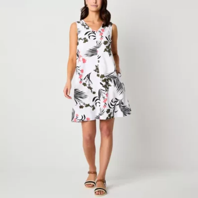 Liz Claiborne Womens Sleeveless Midi Floral A-Line Dress