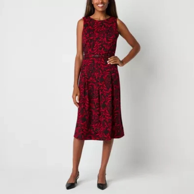 Liz Claiborne Womens Sleeveless Midi Scroll A-Line Dress