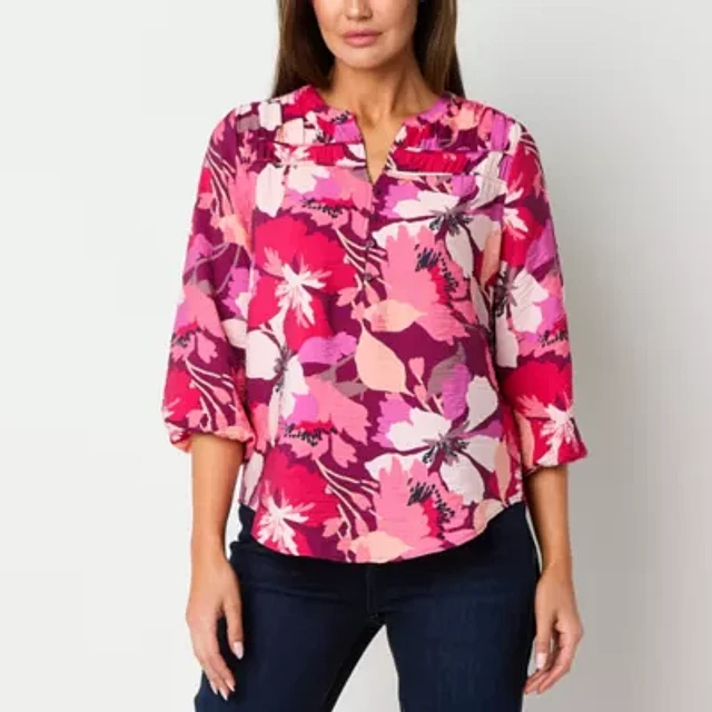 Liz Claiborne Womens Crew Neck 3/4 Sleeve Plus Blouse