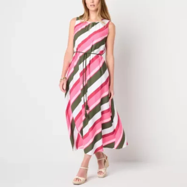 Liz Claiborne Womens Tall Sleeveless Striped Maxi Dress