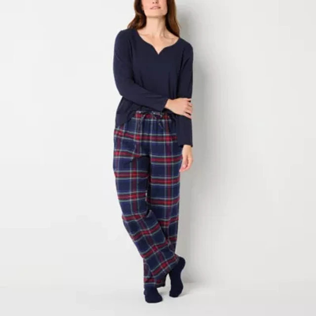 Liz Claiborne Womens Flannel Long Sleeve 2-pc. Pajama Sets