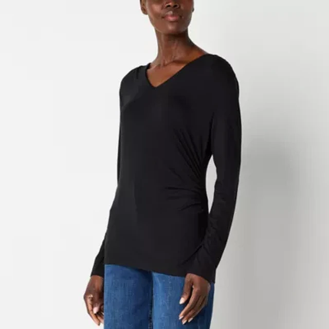 Liz Claiborne Womens V Neck Long Sleeve T-Shirt