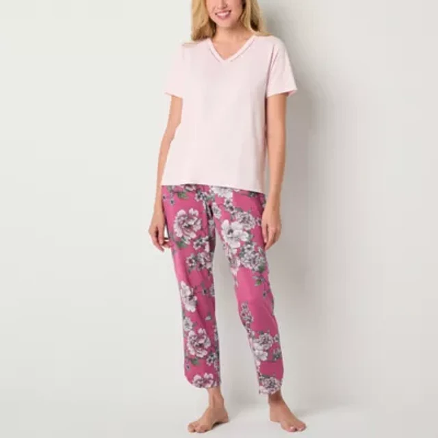 Cuddl Duds Womens V-Neck Short Sleeve 2-pc. Pajama Sets