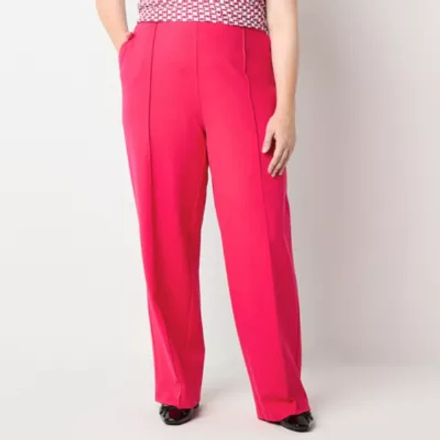 Liz Claiborne Womens Wide Leg Mid Rise Classic Fit Plus Pull-On Pant