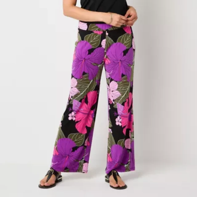 Liz Claiborne Womens Wide Leg Mid Rise Pull-On Pant