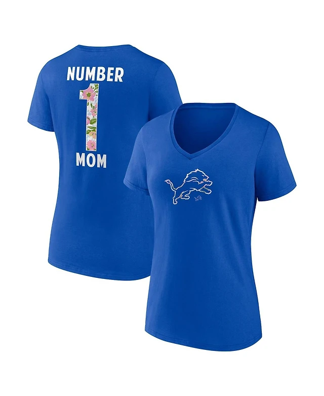 Logo Athletic Women's Blue Detroit Lions Number 1 Mom Floral V-Neck T-Shirt