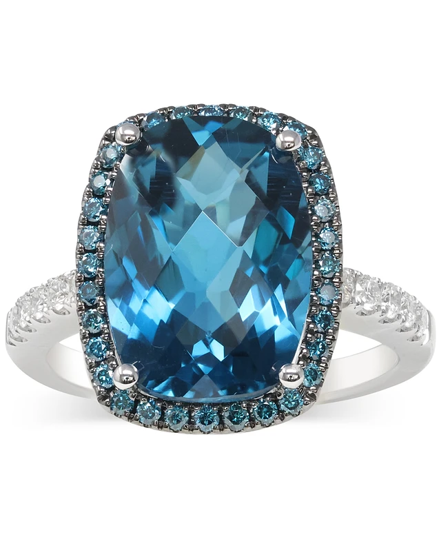Effy London Blue Topaz (12-1/3 ct. t.w.) & Diamond (1-1/5 Halo Statement Ring 14k White Gold (Also available Gold)