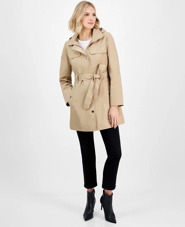 London Fog Women's Zip-Front Hooded Belted Trench Coat
