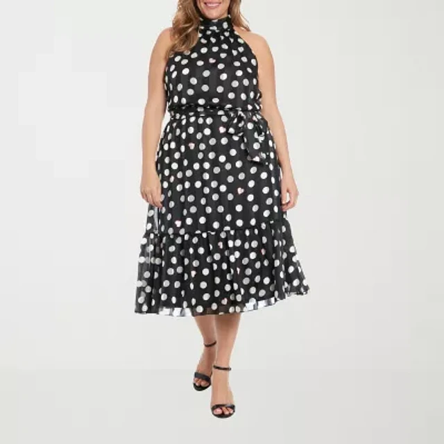 London Style Womens Sleeveless Dots and Hearts Midi Fit + Flare Dress Plus