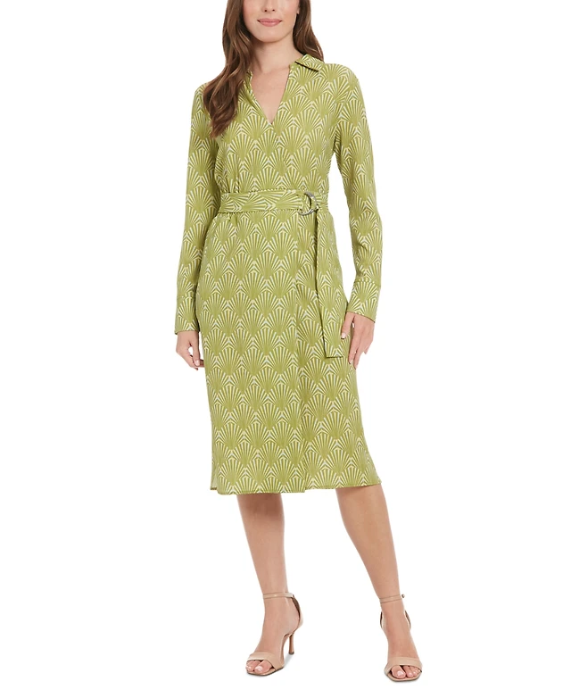 London Times Petite Printed Faux-Wrap Dress