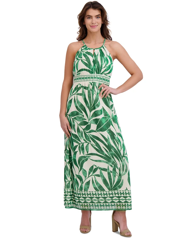 London Times Plus Size Floral-Print Halter Maxi Dress