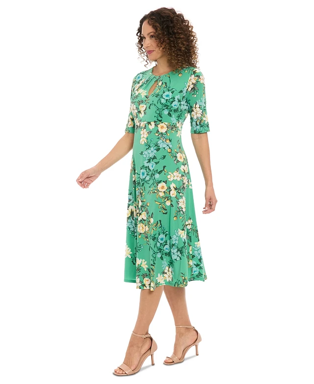 London Times Women's Printed Elbow-Sleeve Midi Dress
