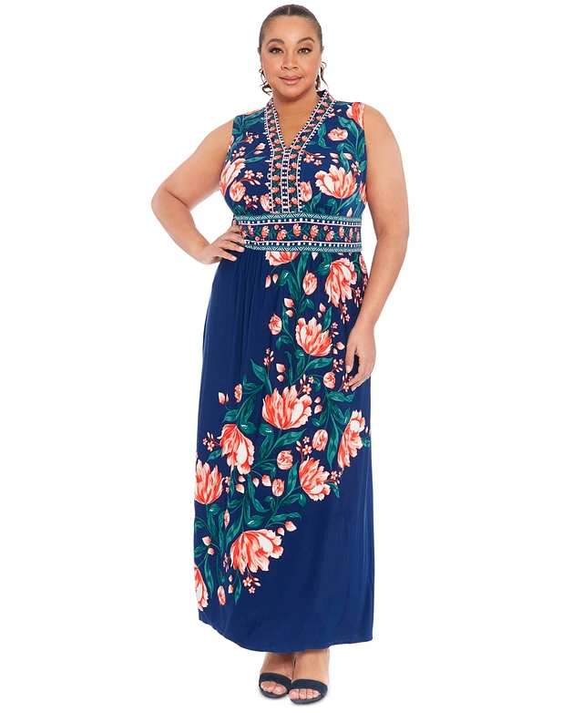 London Times Plus Size Floral Sleeveless Maxi Dress