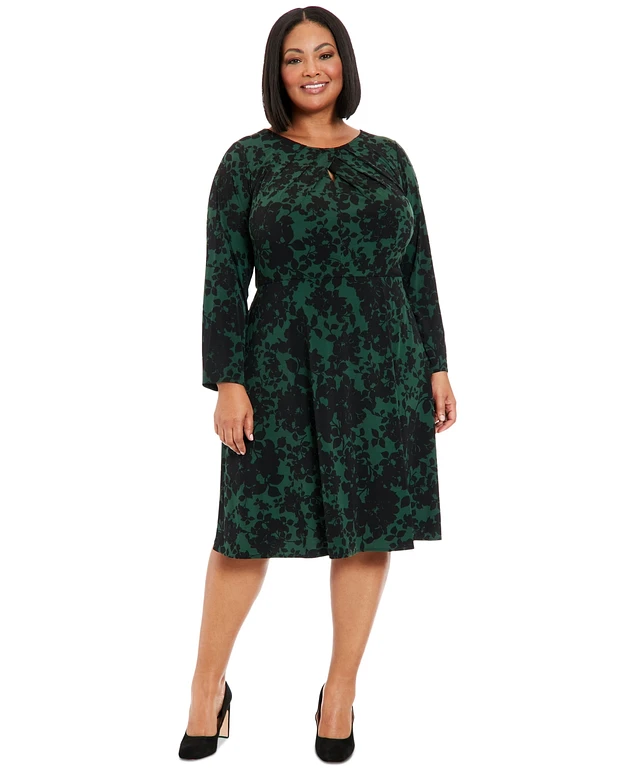 London Times Plus Size Keyhole-Front Midi Dress