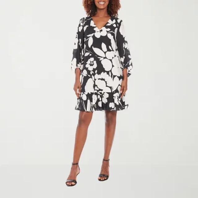 London Times Womens 3/4 Sleeve Midi Floral Shift Dress