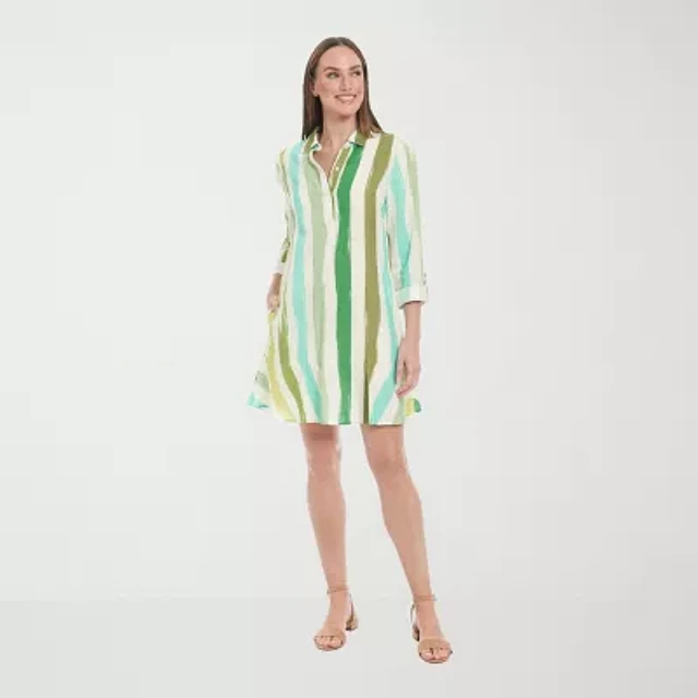 London Times Womens 3/4 Sleeve Striped Shift Dress