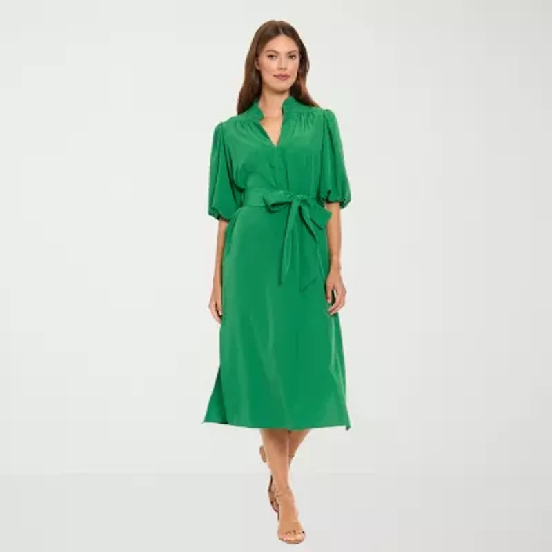 London Times Womens Elbow Sleeve Midi Shift Dress