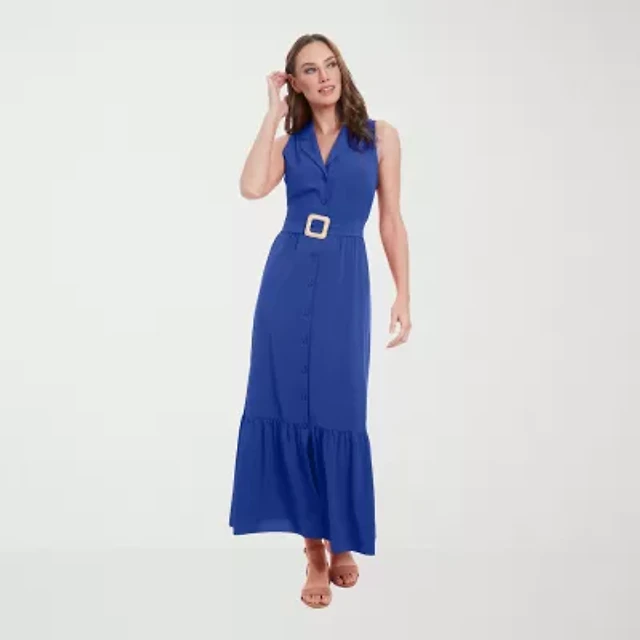 London Times Womens Sleeveless Floral Petite Maxi Dress