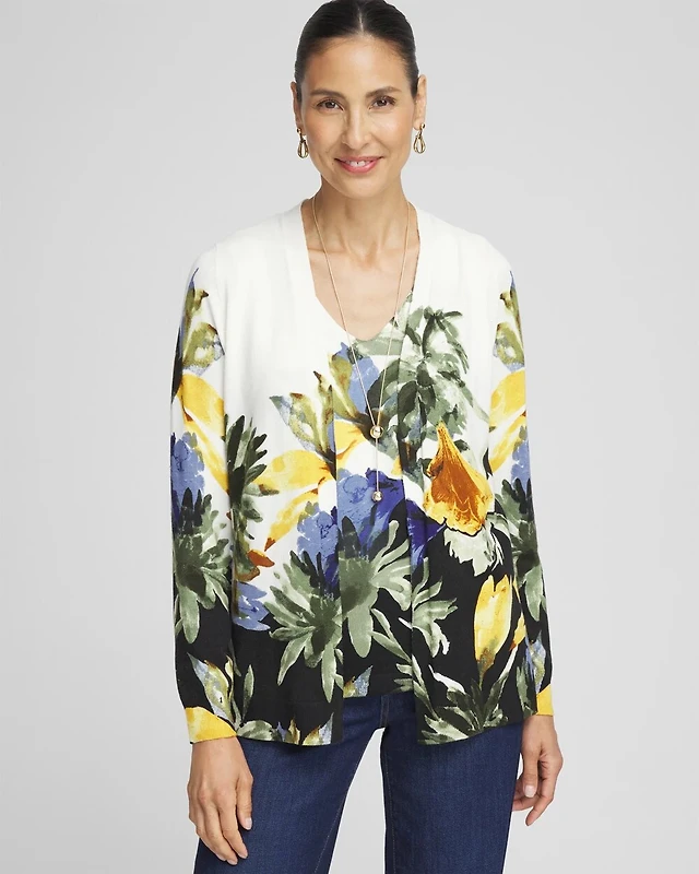 Ny Collection Women's Long Sleeve Knit Cardigan with Chiffon Back