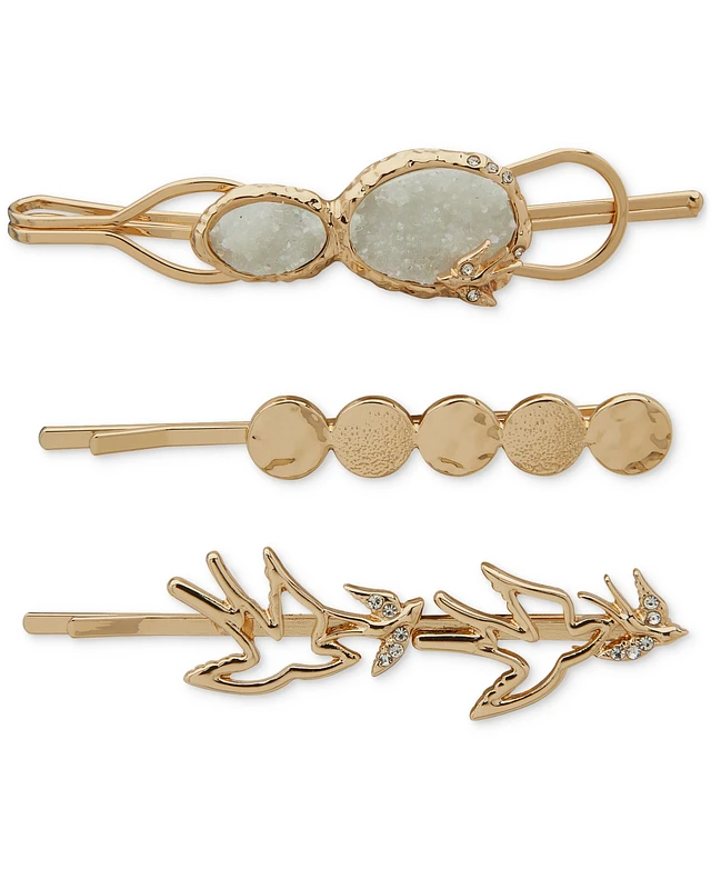 lonna & lilly 3-Pc. Gold-Tone Pave Bird & Drusy Stone Bobby Pin Set