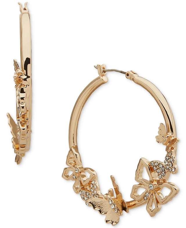 lonna & lilly Gold-Tone Crystal Pave Butterfly Motif Medium Hoop Earrings, 1.3"