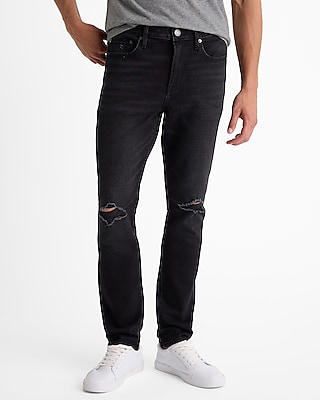 Loose Striped Dark Wash Stretch Carpenter Jeans