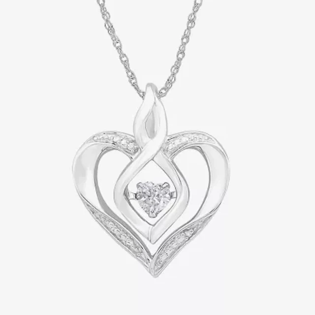 Womens Diamond Accent Lab Created White Sapphire Sterling Silver Heart 18 Inch Pendant Necklace