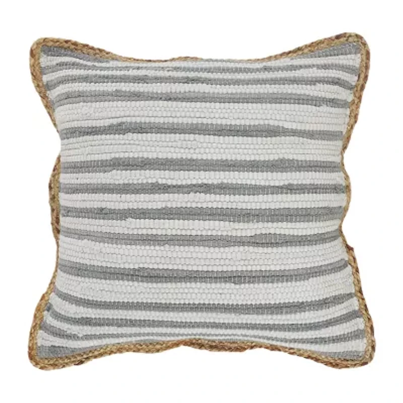 Designed to stand alone or layer with other accents, the riley throw pillow brings a new dimension of style to your space. This versatile accent merges well with multiple home decor styles from boho to modern to coastal to country chic. The natural jute trimmed border and classic striped geometric cotton center combine to be a textured treasure with a pop of color. Crafted with care in india, each accent pillow is unique with its very own individuality.